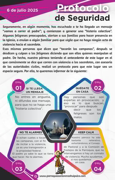 El padre Julio había ido a la Capilla "La Lupita" a confesar a los niños y adolescentes del catecismo; y a su regreso a la parroquia, notó preocupación. Se le comentó que había circulado un mensaje en el que lo iban a correr; y nuevamente nos invitó a no hacer caso, a esos mensajes, y nos reiteró que se cuenta con un protocolo de seguridad.
